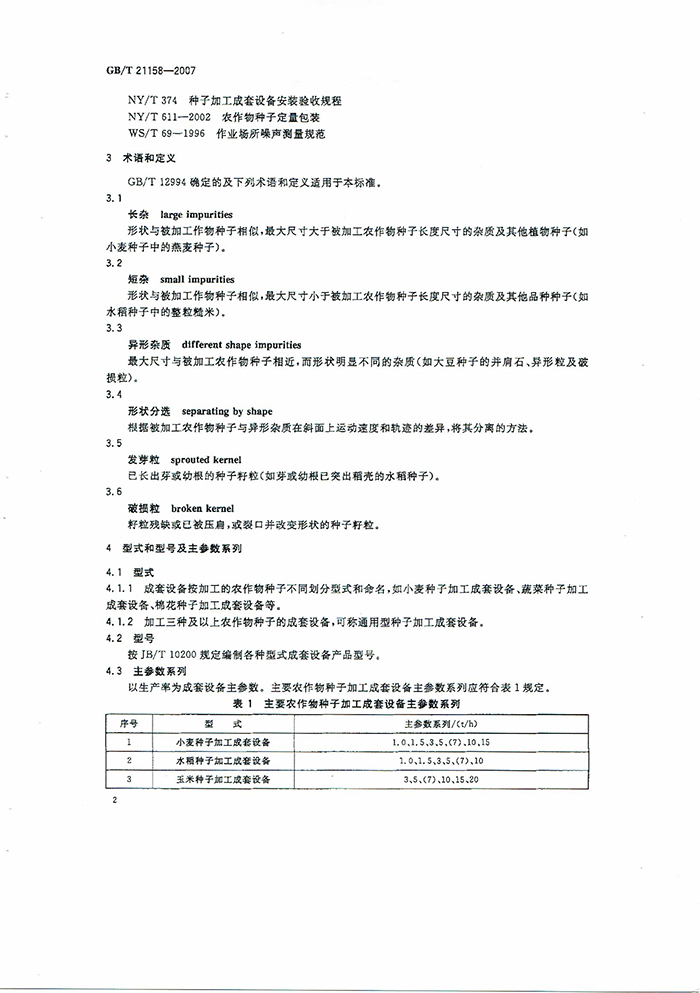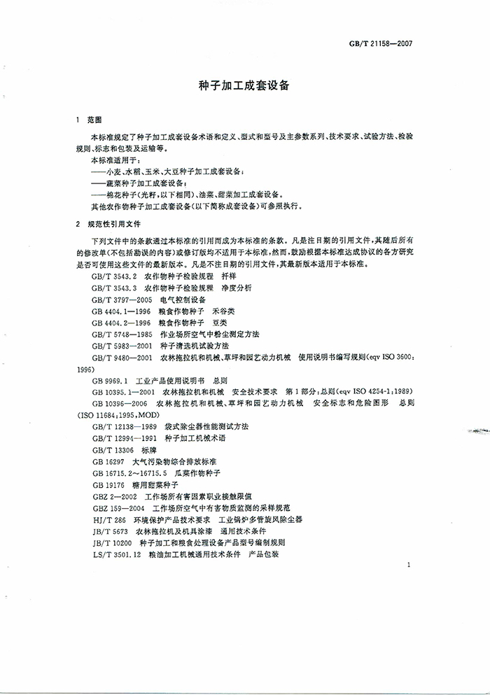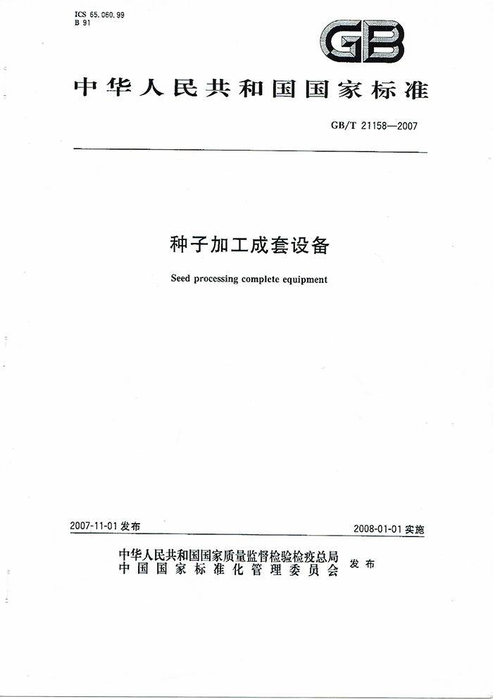 GB/T21158-2007種子加工成套設(shè)備國家標(biāo)準(zhǔn)